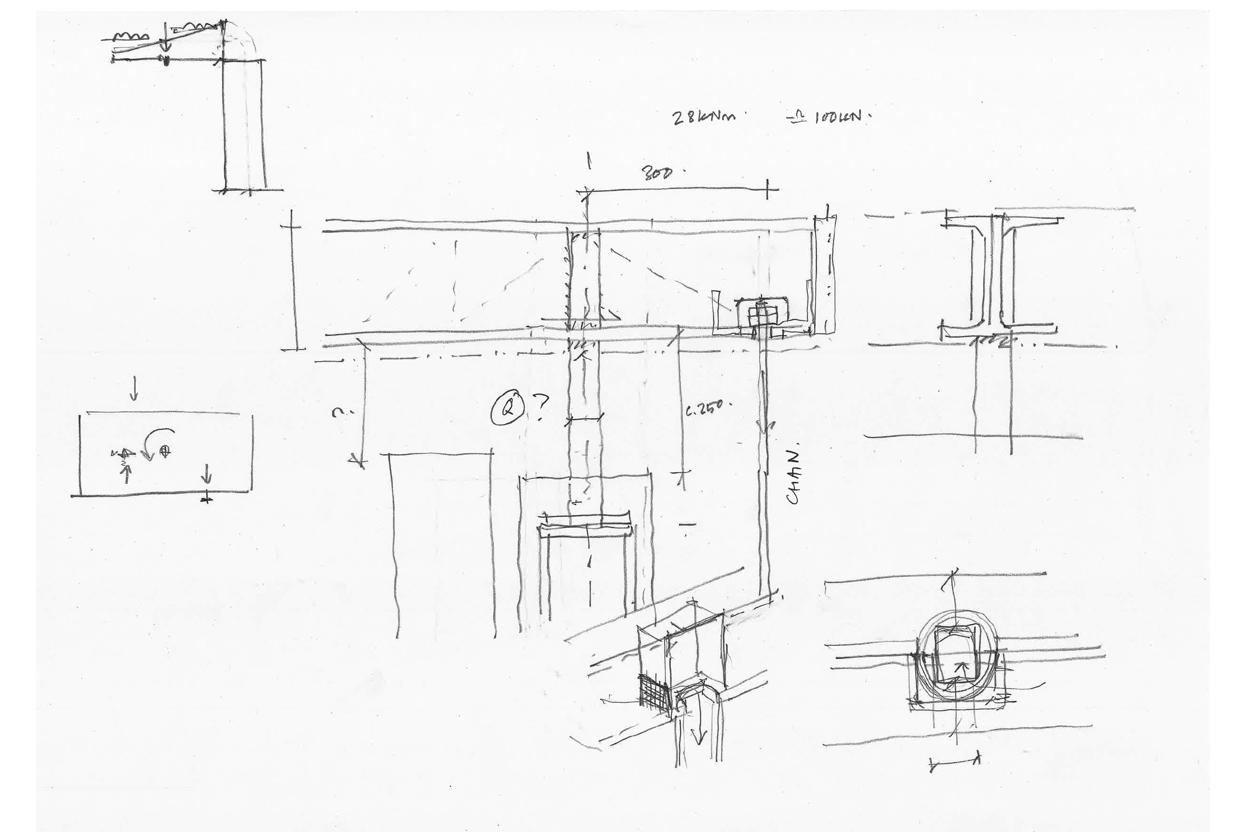 The early sketches here capture the thinking so far: refining the structure to minimise steel depth, while developing a cassette framework that can be assembled efficiently for the show, and, just as importantly, dismantled, transported, and rebuilt in Rotherham afterwards.