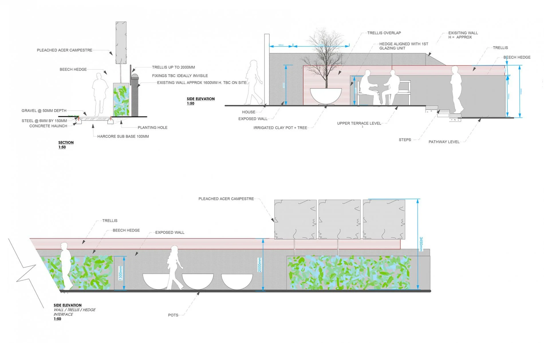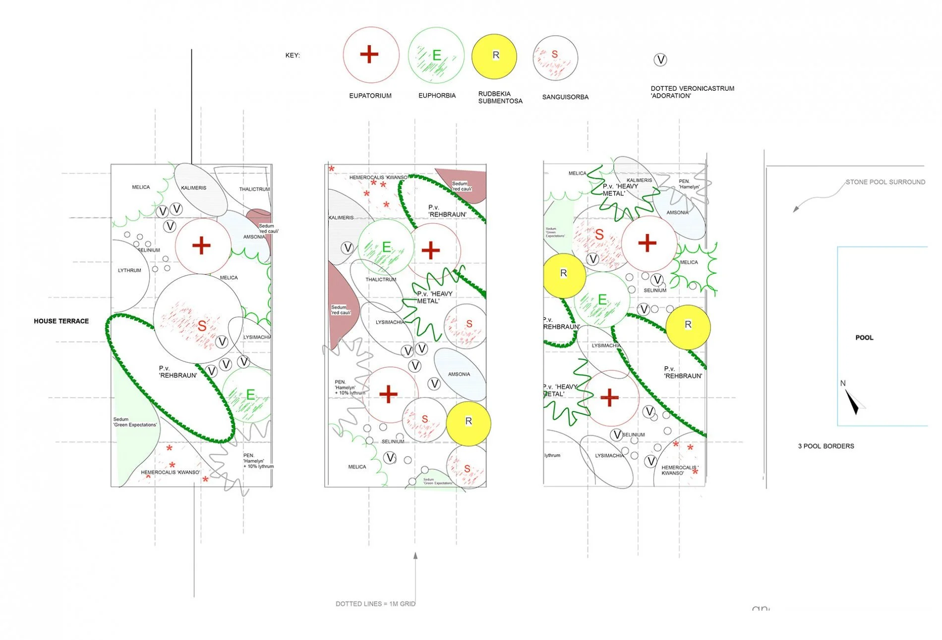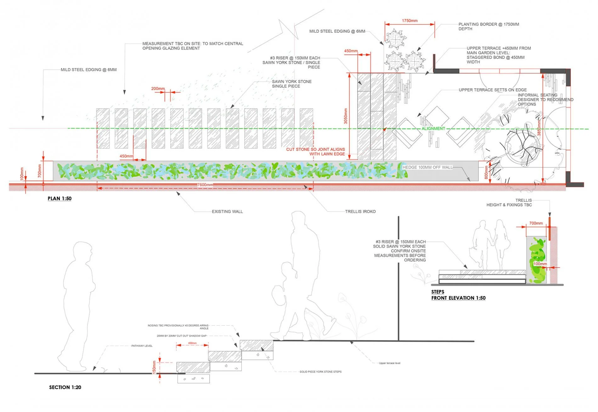 To progress the garden design sketch proposal, we prepare a Detail Package for both hard & soft landscaping in order to provide relevant construction detail & Planting Plan information, to thus enable budget costing, sourcing and procurement.